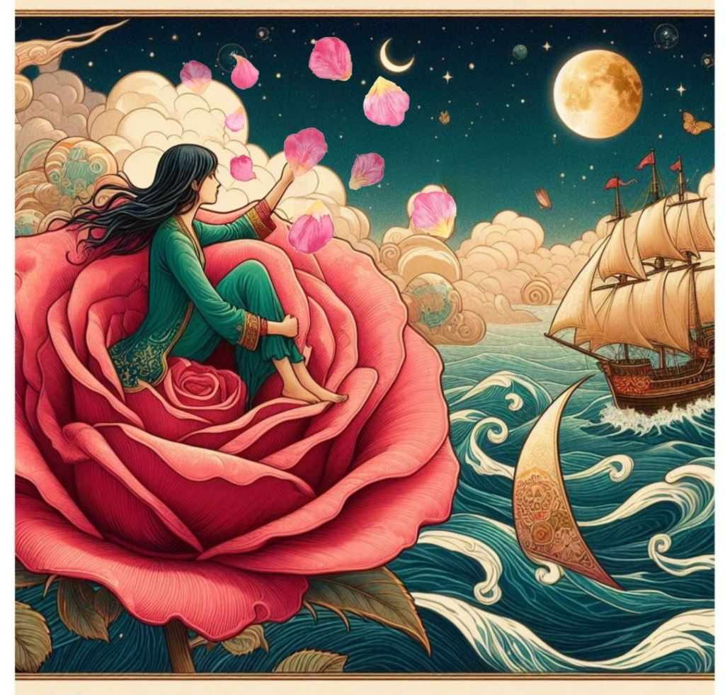 Un voyage sur un tapis volant au cœur d’une rose par delà les mers et les océans. Ce texte est inspiré de ma rencontre avec une dame qui collectionne les rosacées anciennes et leur voue une inconditionnelle passion. J’ai un jour visité son jardin …